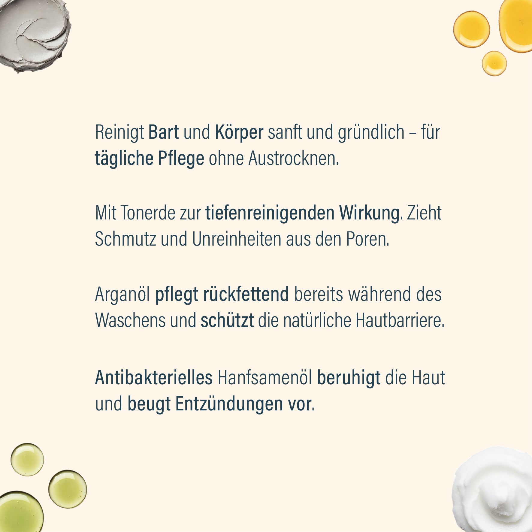 Der erste Schritt zu einem gesunden Bart ist die richtige Reinigung. Schmutz, überschüssiges Öl und tote Hautzellen können die Poren verstopfen und Hautirritationen verursachen. Die Folgen sind Juckreiz und Entzündungen.Achte darauf, dass du eine natürliche Seife oder ein Bartshampoo ohne Silikone kaufst. Silikone legen sich über das Haar und lassen es unfassbar gut anfühlen, leider verkommen die Haare jedoch nacheiniger Zeit, da sie wie in einer Hülle eingesperrt sind. Ich empfehle dir, deinen Bart nicht häufiger als alle 2-3 Tage mit einer Seife zu reinigen - zu häufiges Waschen kann die natürliche Ölschicht der Haut angreifen und führt zu noch mehr Juckreiz.
